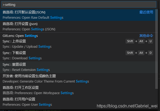 快速打开 使用快捷键 Ctrl+Shift+P ,然后搜索setting