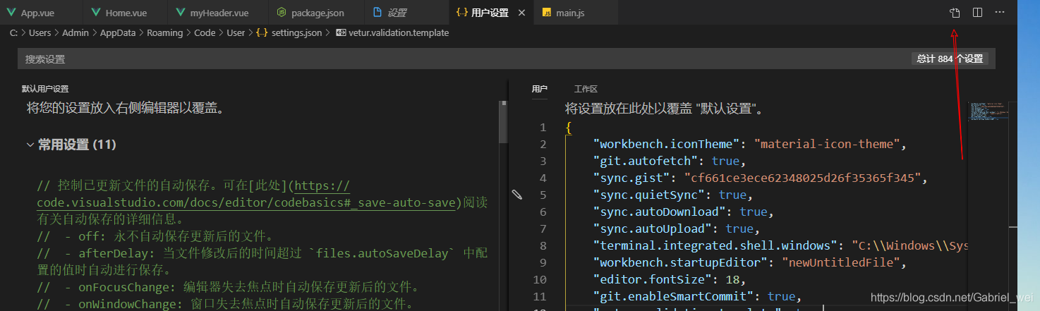 首选项:打开默认设置(json),这个打开的是defaultSettings.json文件 首选项:打开工作区设置,这个打开的是